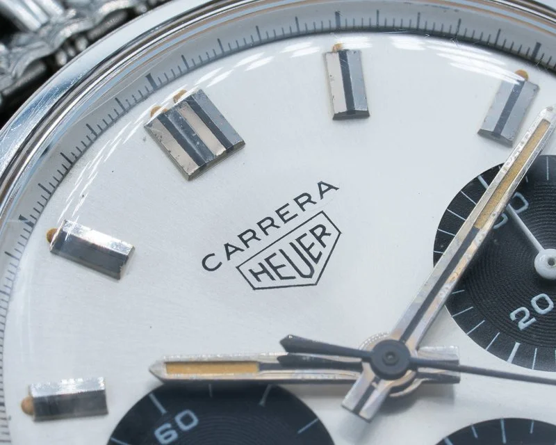 Introduced in the 1960s, the Heuer Carrera 2447SN is one of the purest chronographs ever made. Jack Heuer designed it for legibility at speed—wide open dial, sharp contrast, and a complete absence of unnecessary decoration.